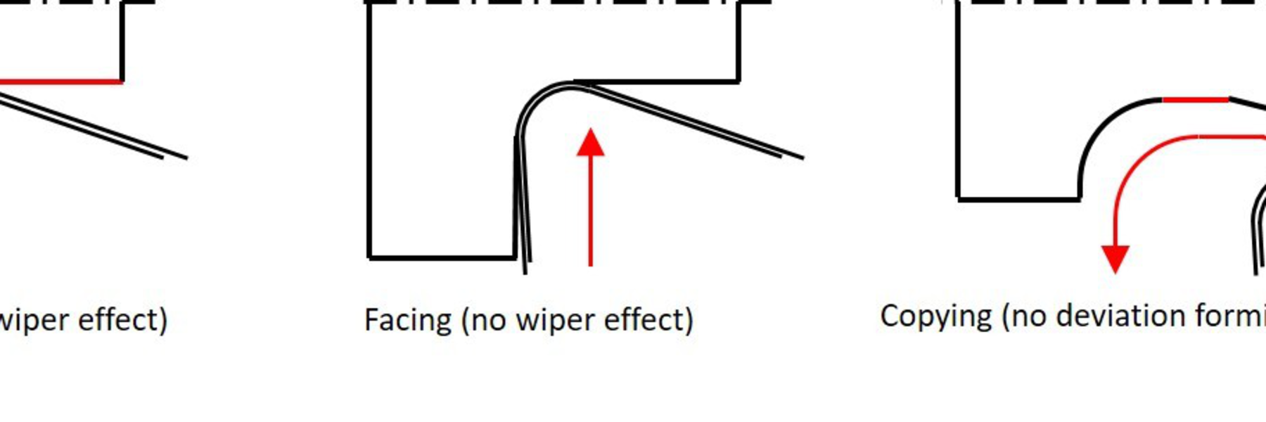 A drawback when machining with wipers, is that it is not possible to generate the true corner radius when machining towards a shoulder. The wiper goes all the way down the flank of the insert, so the wiper geometry will be copied into the corner.